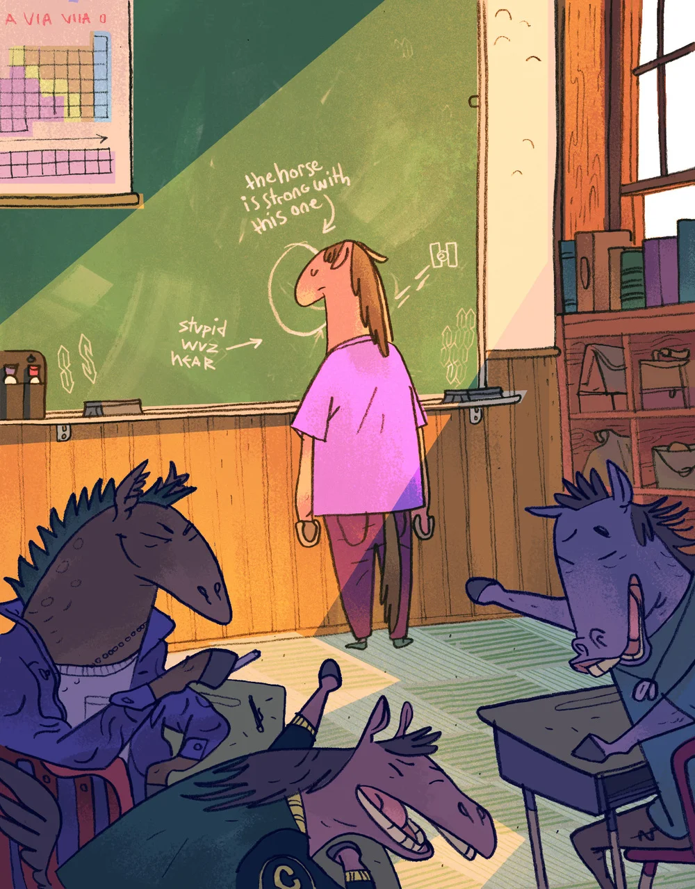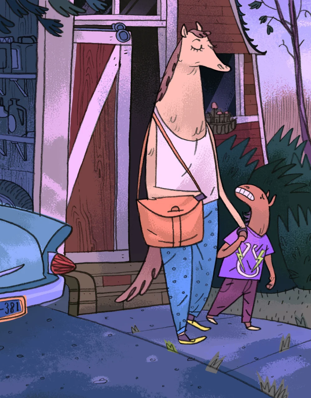 IT'S NOT ALL SALT-LICK FOR MRS. HORSE EITHER. REARING COLTS IS NO JOKE, ESPECIALLY ONE THAT HATES SCHOOL SO MUCH.